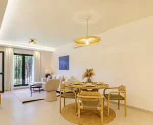 Espaciosa y completamente renovada, esta vivienda se encuentra a pocos pasos de la playa, tiendas y transporte público en San Pedro de Alcántara. Ubicada en la encantadora urbanización Los Ángeles, con edificios de estilo andaluz, fuentes y zonas ajardinadas. La vivienda cuenta con un acogedor porche, jardín, diseño moderno, dos dormitorios, cocina totalmente equipada y una amplia plaza de aparcamiento privado. Ideal como hogar, refugio vacacional o inversión.