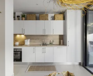 En su interior, el apartamento ofrece un amplio salón con una moderna cocina americana. Los tres dormitorios tienen acceso directo a la terraza, integrando a la perfección la vida interior y exterior.