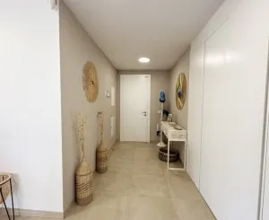 El apartamento cuenta con un diseño ideal con tres dormitorios y dos baños. El dormitorio principal incluye un baño en suite y acceso directo a la terraza. Los pasillos están equipados con amplios armarios empotrados, ofreciendo un espacio de almacenamiento abundante y práctico.