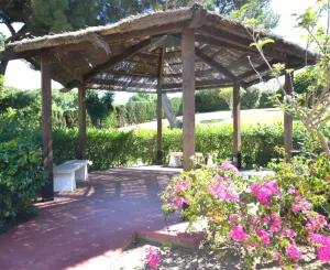 Una entrada trasera privada conduce directamente a una de las piscinas, perfectamente mantenidas, rodeadas de cuidados jardines comunitarios.