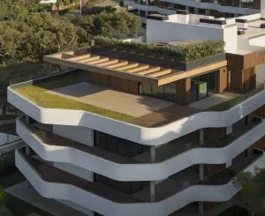 Les propriétés respectueuses de l'environnement inondent les intérieurs de lumière grâce à de grandes fenêtres et des portes coulissantes. De plus, les penthouses bénéficient de grandes terrasses sur le toit de 55 à 357 mètres carrés tandis que les unités du rez-de-chaussée comprennent leur propre jardin privé.