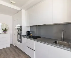 The open-concept kitchen and living area create a welcoming space, perfect for daily living and entertaining. From the living room, step out onto the large balcony, ideal for alfresco dining or relaxing in the fresh air. Beyond the balcony, you’ll find an exclusive rooftop terrace complete with a sleek pergola for shaded relaxation and plenty of space for sunbathing or hosting gatherings.
