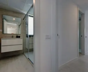 The master bedroom boasts an ensuite bathroom and direct access to the terrace, while the second bedroom offers a cozy double bed and ample wardrobe space. With centralised air conditioning throughout, you'll stay comfortable year-round. Additional features include a private underground parking space, a storage room, and access to two large swimming pools, a kids' pool, gym, sauna, and more.