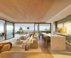 Architecture and nature blend in this breathtaking project: 70 luxurious apartments, 49 villas with gardens, 25 celestial villas, and 20 celestial penthouses, surrounded by local vegetation. The residential complex offers a unique living space where comfort, elegance, and natural beauty come together. This unique complex offers homes with 2 and 3 bedrooms, characterized by spaciousness and light. Fully glass sliding doors allow natural light to double, and splendid views open up in all their beauty. Each home comes with a terrace boasting stunning views and a private pool.