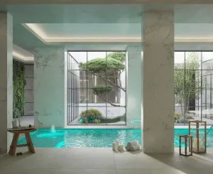 The three towers, each consisting of 21 floors, offer accommodation ranging from 1 to 4 bedrooms, with views of the sea and interiors ranging from 131 to 381 square meters. Spacious private terraces complement each apartment. The interior design, created by the renowned Beriestain studio, is characterized by modernity, ecological cleanliness, and exquisite materials.