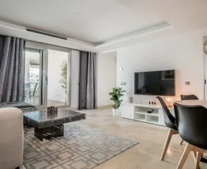 The apartment is fitted with high quality fixtures and finishing, marble flooring throughout, double glazed windows for energy efficiency and hot & cold air—conditioning. The apartment also comes with an underground parking space. Complex: Constructed to the highest quality, this new beachside residential complex of just 48 apartments is ideally located on the beachside of the new San Pedro de Alcántara Boulevard.