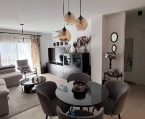 Прекрасные, полностью отремонтированные апартаменты с двумя спальнями (одна небольшая) и одной ванной комнатой. Полы из мрамора, всё в квартире новое, и почти всё остаётся, за исключением нескольких личных вещей. Ремонт выполнен со вкусом и до идеала. В комплексе есть общий бассейн и сады, а также просторная парковка. В комплексе всего 24 квартиры. Плата за коммунальные услуги — 100 евро в месяц. Отличная инвестиция для пары или для сдачи в аренду на отдых благодаря расположению.