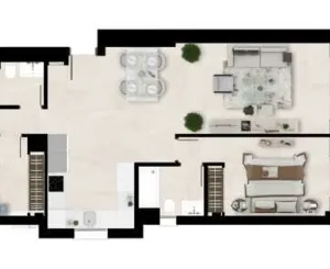 Все квартиры имеют двойные стеклопакеты и бронированные двери. Те же керамические плиты от Saloni используются повсюду в домах, в крупном формате 60x60 см.Встроенная кухня оснащена духовкой, холодильником, индукционной плитой и вытяжкой. Полностью оборудованные ванные комнаты, душевая кабина и зеркало включены.
